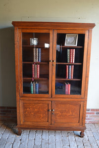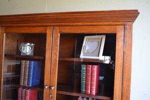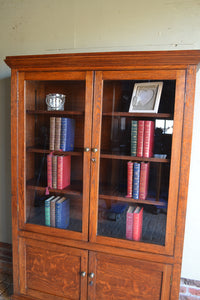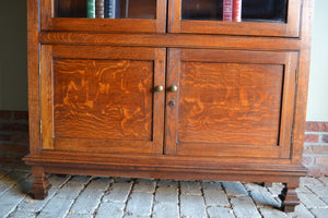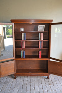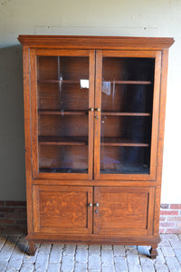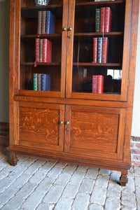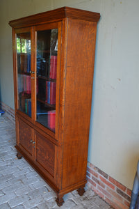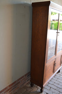 19e eeuwse Hollandse eiken houten boekenkast, vitrinekast, winkelkast, servieskast, bibliotheekkast.