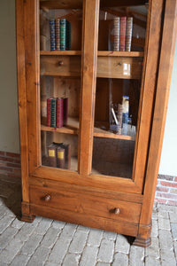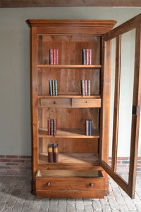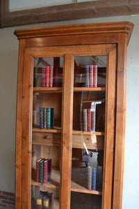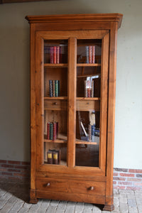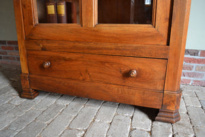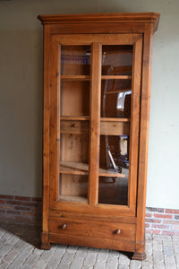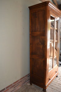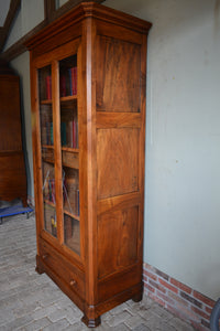 19e eeuwse Franse noten houten Louis Philippe eendeurs boekenkast, vitrinekast, winkelkast, servieskast, bibliotheekkast.